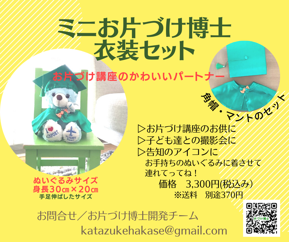 ぬいぐるみの「ミニお片づけ博士衣装セット」