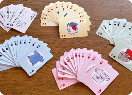 子どもたちの身近な遊びの中から整理収納の基礎を学ぶことが出来れば、整理収納のすそのが広がるのではと考え作ったものがSelect2rump(セレクトトランプ)「選び取るトランプ」です。トランプは、準備も片づけも簡単でまた収納にも場所を取りません。出掛けるときにも気軽に持っていける玩具です。また、柔軟な人数変更が可能で、天気に左右されず遊べます。